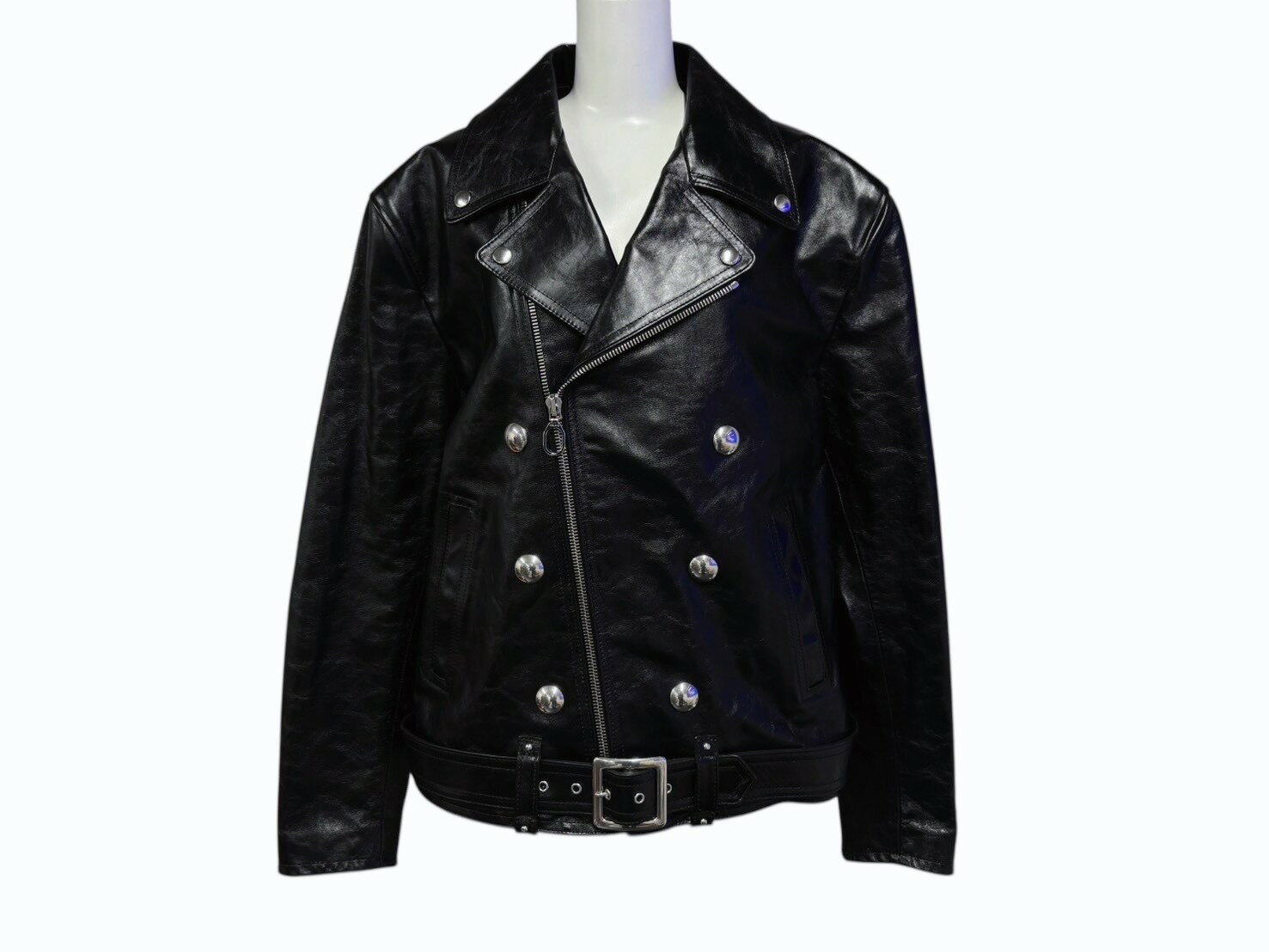 極美品 CELINE セリーヌ ダブルライダースジャケット 2EK84132038 NO イタリア製 牛革 ブラック シルバー金具 サイズ56 中古 4b009029
