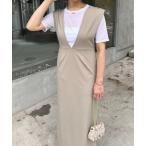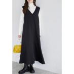 ジャンパースカート Vネックロングジャンパースカート