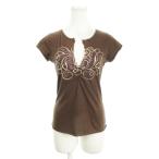 【中古】ジューシークチュール JUICY COUTURE カットソー キーネック 半袖 ギャザー ラインストーン プリント P 茶 ブラウン /AH7 ■GY58 レディース 【ベクトル 古着】 260106