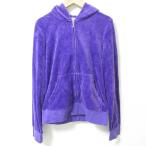 美品 JUICY COUTURE ジューシークチュール バックロゴ ビジュー ベロア ジップアップ パーカー フーディー L パープル レディース 古着 中古