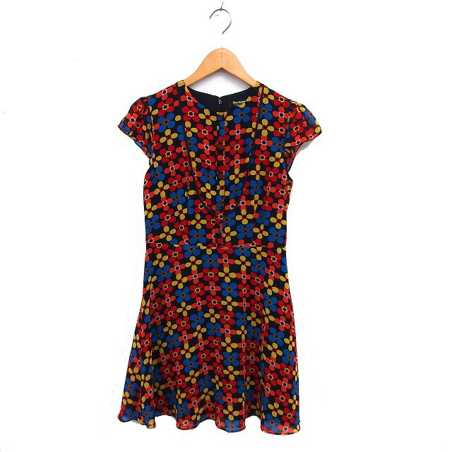 【中古】ジューシークチュール JUICY COUTURE フラワープリント フレア ワンピース ミニ 飾りボタン シフォン 半袖 2 黒 ブラック /NT32 レディース 【ベクトル 古着】 251126