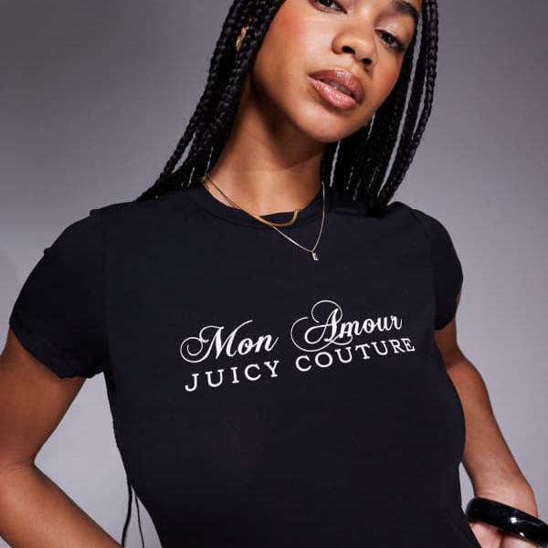 ジューシークチュール Juicy Couture ジューシークチュールの「モナムール」フィットベビーTシャツ(ブラック) トップス レディース 女性 インポートブランド 小さいサイズから大きいサイズまで