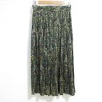 美品 JIL SANDER+ ジルサンダー ヴィンテージ シルク100% 孔雀の羽柄 プリーツスカート 36 グリーン系 レディース 古着 中古