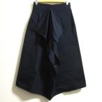 良品 JIL SANDER ジルサンダー シルクブレンド ロング フリルスカート サイズ34 ネイビー レディース 古着 中古