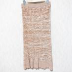 美品 JIL SANDER NAVY ジルサンダーネイビー ロング タイト ワイドリブ ニットスカート JNWM7573C L ブラウン レディース 古着 中古