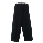 ジルサンダープラス JIL SANDER+ ウールパンツ スラックス ストレート ツータック センタープレス 38 黒 ブラック /GV ■GY18
