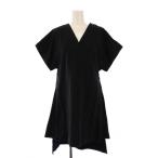 ジルサンダー JIL SANDER フレアワンピース ひざ丈 半袖 フレンチスリーブ Vネック ワンカラー XS 黒 ブラック /BB レディース
