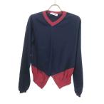 【中古】JIL SANDER ジルサンダー ニット 長袖ニット 34サイズ 小さいサイズ ネイビー×ワインレッド_s-1266-r28