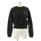 カルバンクラインジーンズ クロップドウェットシャツ スウェット トレーナー 長袖 裏起毛 ロゴ刺繍 XS 黒 ブラック J222233