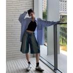 ジーンズ デニム デニムパンツ バック刺繍ロゴバミューダカーブデニム/バレルレッグデニム レディース
