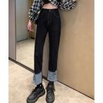 ジーンズ デニム デニムパンツ ターンバック風 ボタン デニム パンツ レディース