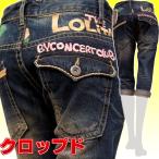 ロリータジーンズ 1359 クロップド デニム ロールアップ バラ 花 刺繍 ロリータ