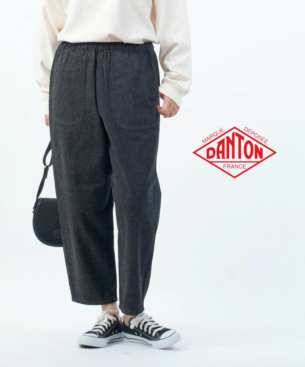 【2025年秋冬新作】ダントン DANTON デニム パンツ イージーパンツ ジーンズ テーパード クロップド丈 ブラックデニム 黒 ウエストゴム 綿 コットン カジュアル・JD-2540KBK-0322502(レディース)(JP)
