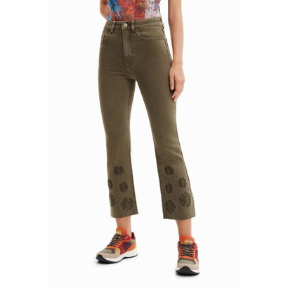 デシグアル Desigual 刺繍 クロップド フレアジーンズ (グリーン)