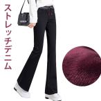 ジーンズ レディースパンツ フレアパンツ フレア レディース レギンス デニムパンツ 厚手 裏起毛 フレア ブラックデニム フレアパンツ カットオフ