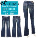 ET BOITE エボワット E1814 ブーツカット ジーンズ デニム タイト ハイパーストレッチ 小尻 5550 ビンテージ加工 レディース ボトムス
