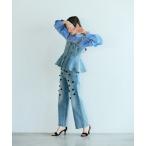 ジーンズ デニム デニムパンツ ビジュー付きブーツカットデニム レディース