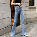 デニムパンツ スリット レディース 通販 フレアデニムパンツ フレアパンツ ジーンズ パンツ デニム ベルボトム フレア 長ズボン ズボン デニムパンツ