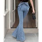 ジーンズ デニム デニムパンツ 「Jasmine」バックリボンベルボトムデニムパンツ レディース
