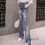 ジーンズ デニム デニムパンツ ラインストーンデニムパンツ ビジュジーパン ベルボトム ジーンズパンツ ボトムス レディース
