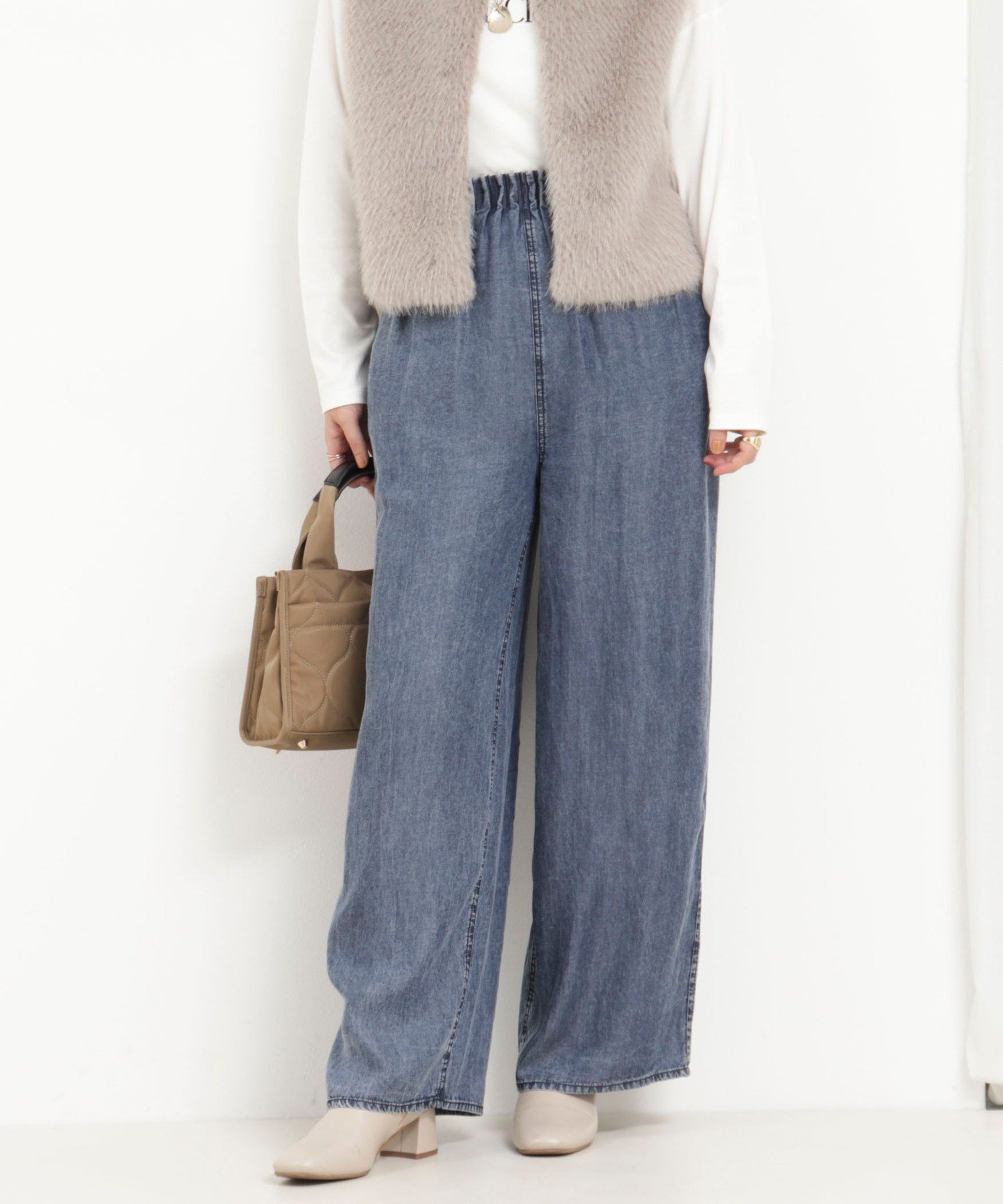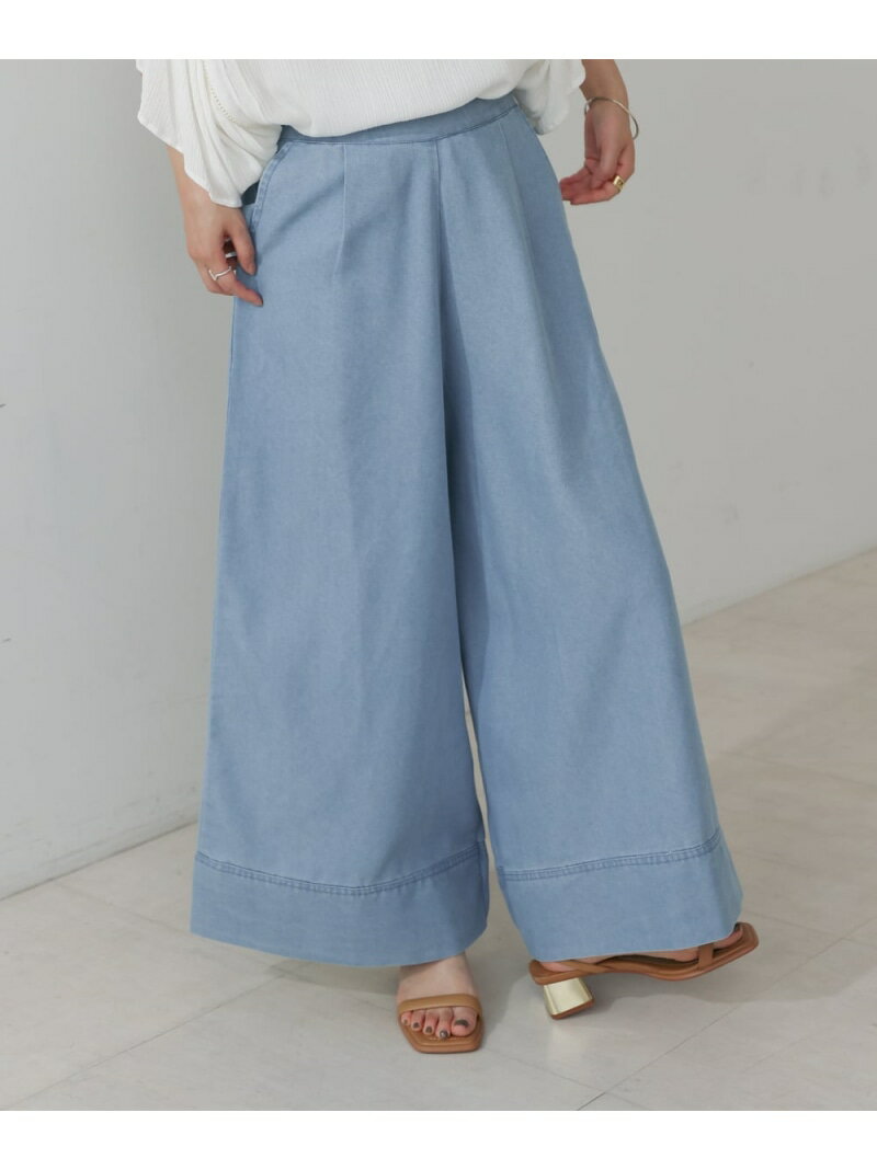 【SALE/30%OFF】MICO COULIER バイオシルクデニムタックワイドフレアパンツ ノーリーズ パンツ ジーンズ・デニムパンツ ブルー グレー【送料無料】