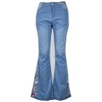 【並行輸入品】CHARTOU レディース シックな花柄刺繍ハイライズベルボトムフレアジーンズ 幅広足ロングデニムパンツ US サイズ: XX L