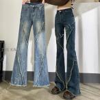 パンツ レディース ボトムス デニム ブーツカット ベルボトム フレア ハイウエスト 綿 ジーンズ ジーパン カジュアル おしゃれ 春 秋 韓国 to28574
