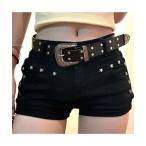 ジーンズ デニム デニムパンツ バックル飾り ローライズショートデニムパンツ レディース