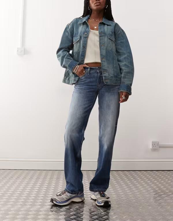 ウィークデイ レディース ボトムス デニムパンツ ストレート ローライズ ジーンズ Weekday Arrow low rise straight leg jeans in faded dark blue wash Board blue ブルー