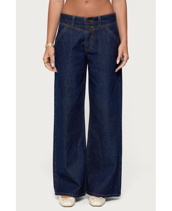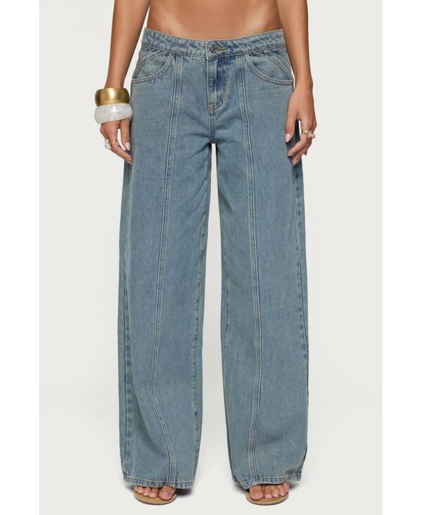 アディクテッド レディース ボトムス デニムパンツ ローライズ ジーンズ Edikted Women's Stitch & Pleat Low Rise Jeans Blue ブルー