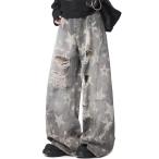 ジーンズ デニム デニムパンツ 「春夏新作」スター柄 ローライズ ダメージ ワイドジーンズ レディース