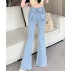 ジーンズ デニム デニムパンツ バックリボンフレアデニムパンツ レディース
