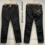 ヴィヴィアンウエストウッド オーブ ロゴ 刺繍 ブラック デニム ジーンズ スキニー ジッパーフライ ローライズ 1 50152622 50152622