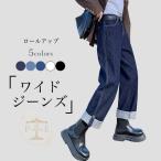ジーンズ デニム デニムパンツ ロールアップ ワイドデニム レディース