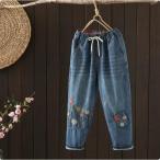 ジーンズ デニムパンツ テーパードパンツ レディース ワイド ボトムス チノパン ロールアップ ウエストゴム 大きいサイズ ゆったり 体型カバー