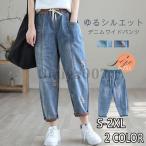 ジーンズ デニムパンツ レディース ワイドパンツ テーパードパンツ ボトムス チノパン ロールアップ ウエストゴム 大きいサイズ ゆったり 体型カバー