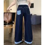 ジーンズ デニム デニムパンツ 別布切替ロールアップワイドデニムパンツ レディース