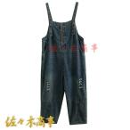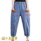 デニムパンツ レディース 刺繍 サルエルパンツ パンツ ゆるいパンツ ジーンズ ジーパン ロールアップ ウエストゴム ボトムス 9分丈 個性派 森ガール 春夏秋 M L 2L 3L