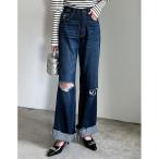 ジーンズ デニム デニムパンツ ロールアップワイドデニムパンツ レディース