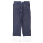 【SALE】LOEWE ロエベ フィッシャーマンデニムパンツ シグネチャー ロゴ レザーパッチ コントラストデザイン ボタンフライ ストレートシルエット ノンストレッチ ロールアップ ジーンズ ボトムス レディース サイズ 36 インディゴ ルーマニア製【中古】