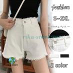 デニム ショートパンツ レディース ハイウエスト 短パン ダメージ ワイド ゆったり 無地 通勤 通学 オシャレ カジュアル 着せや ファッション