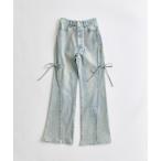 ジーンズ デニム デニムパンツ 「mily bilet」とにかく美脚!サイドフリンジ使いヴィンテージ風デニムフレアパンツ レディース