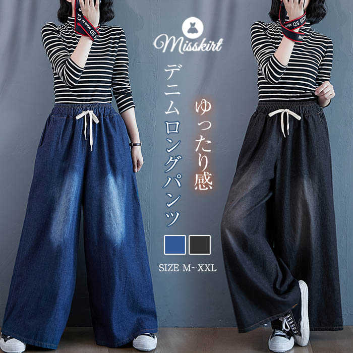 【秋先取り20%OFFクーポン】ワイドパンツ レディース デニム デニムパンツ ロングパンツ ハイウエスト 体型カバー ジーンズ 美脚 大きいサイズ ゆったり ファッション