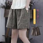 ショートパンツ レディース ハーフパンツ ウエストゴム 綿麻 短パン 半ズボン ゆったり ストライプ柄 カジュアル 通気性 着痩せ キレイめ 通学