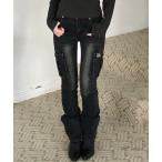 ジーンズ デニム デニムパンツ 「S/M/Lサイズ展開!美脚シルエット!」MIXロック デニムスリムサルエルパンツ レディース