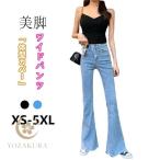フレアパンツ デニム レディース デニムパンツ ロング 脚長効果 伸縮 ストレッチ フレアジーンズ ボトムス ジーンズ カジュアル 春 夏 秋 無地