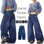 カーブ デニム パンツ レディース 大きいサイズ ワイド パンツ ジーパン ルーズ 脚長効果 体型カバー 柔らか ゆったり ジーンズ レディース カジュアル