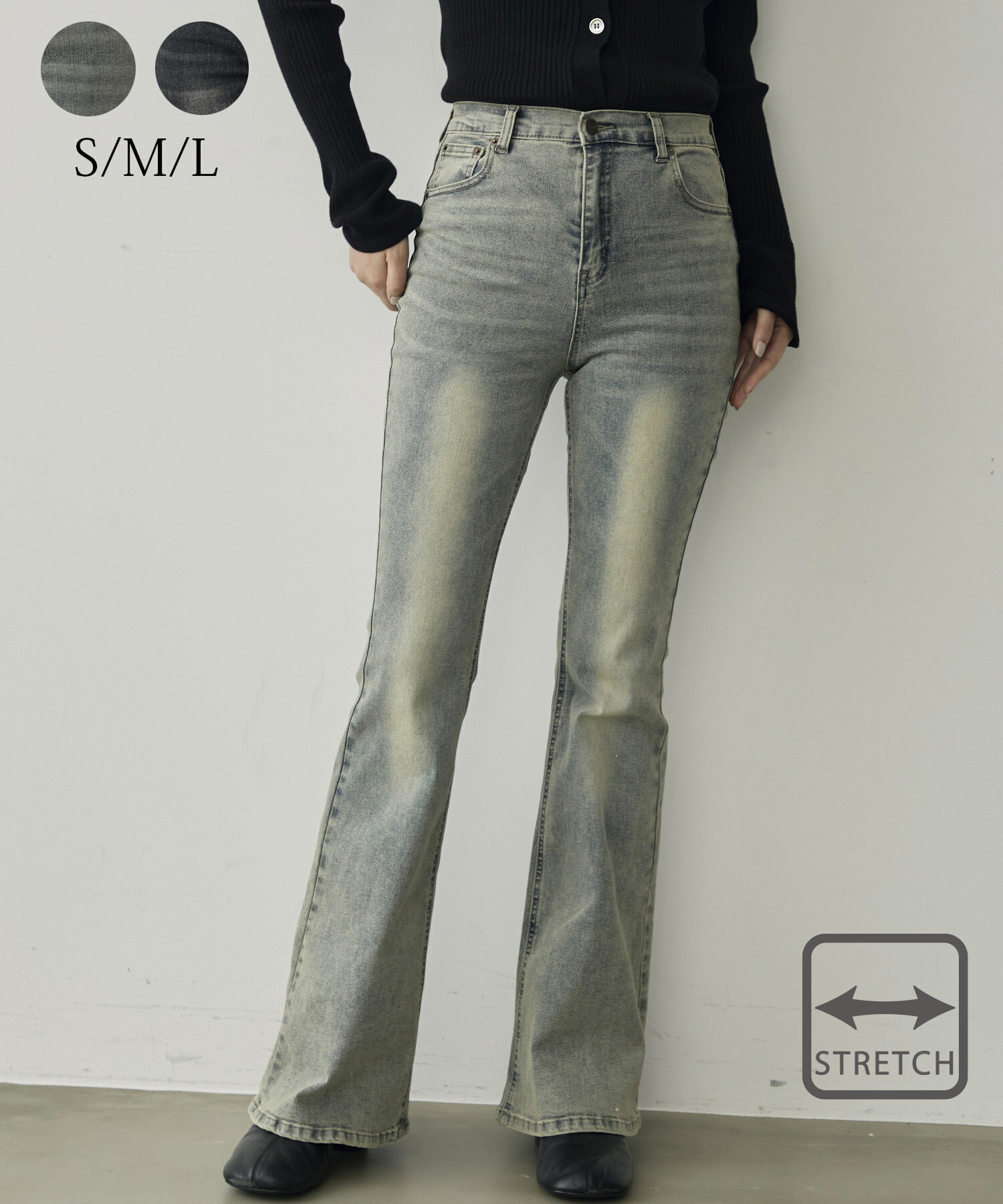 \20%OFFクーポン利用で2376円/【SALE 3299円→2969円】ハイウエストストレッチフレアデニムパンツ デニムパンツ レディース フレアパンツ デニム フレア ボトムス ボトム 美脚 脚長効果 ストレッチ 伸縮性 かわいい おしゃれ 春 夏 秋 冬 ジーンズ WEGO