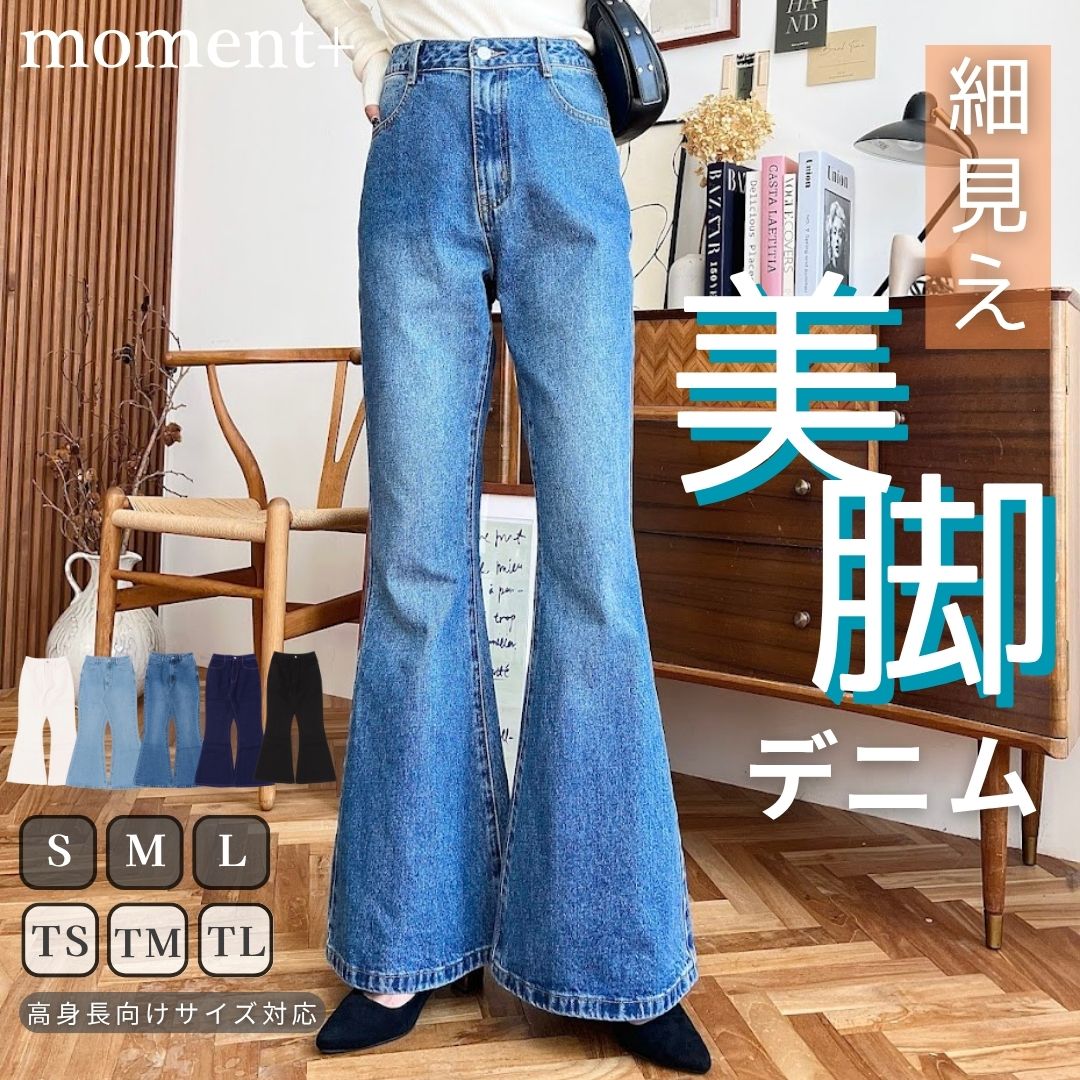 【33%OFF 2,990→1,990円/NEW ARRIVAL】パンツ デニム トールサイズ 高身長 フレアパンツ フレアデニム ツイル ジーンズ ズボン フレア 選べる丈 丈別 美脚 美シルエット 脚長 トレンド シンプル 韓国 レディース 春 夏 秋 冬 mt03060[moment+/モーメントプラス]