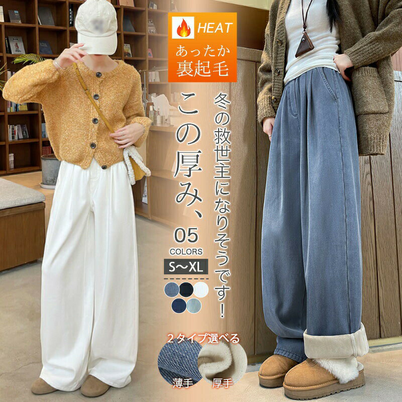 【15%OFF&5%OFFクーポン利用で3,218円!2/4 12:00迄】裏起毛 ワイドパンツ レディース 秋冬 あったか ボトムス タックワイドパンツ 大きいサイズ ジーンズ 裏起毛 暖かい 秋冬 防寒 カジュアル ハイウエスト 脚長効果 低身長さん 高身長さん デニムパンツ ストレート